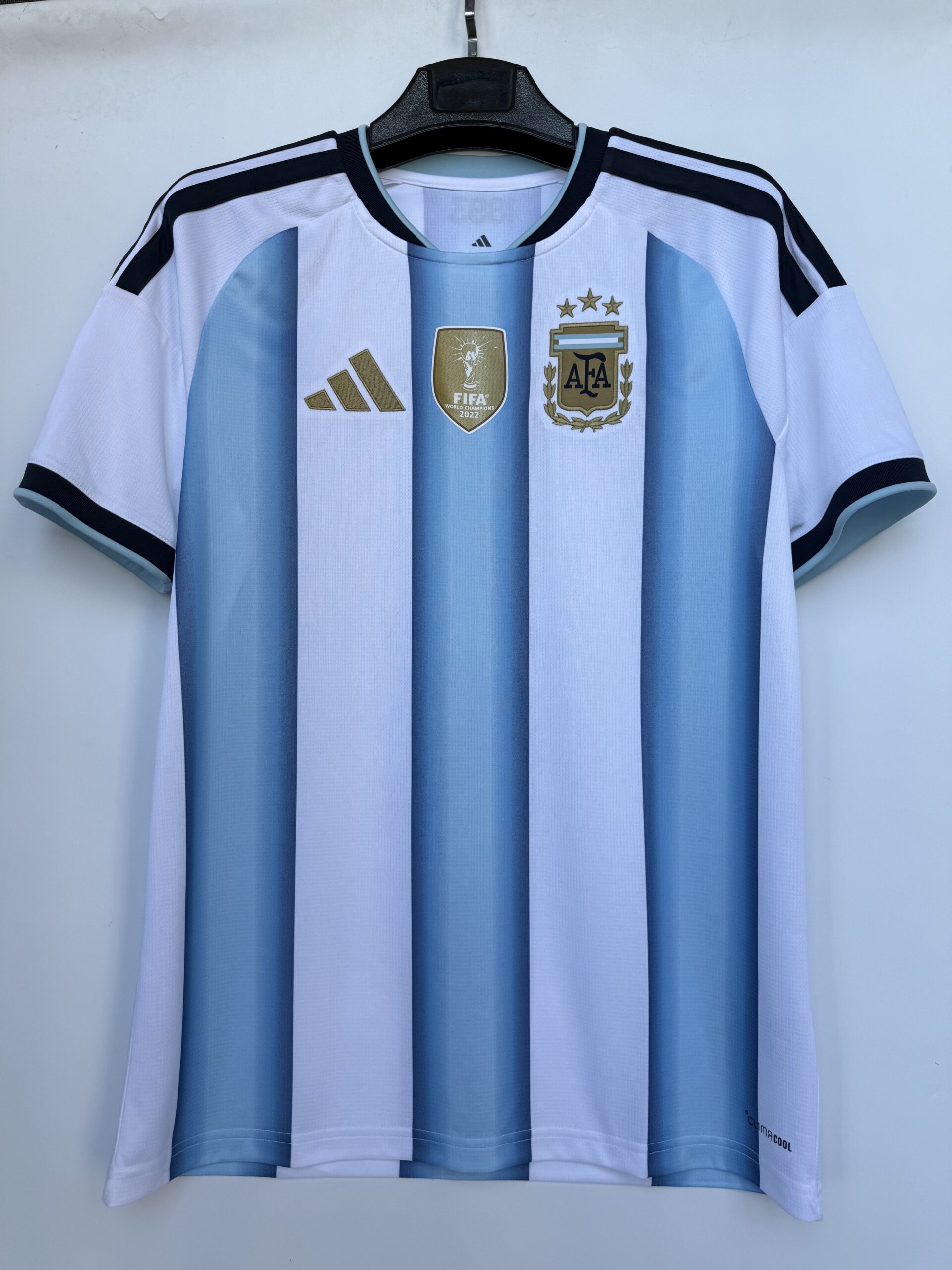 The Argentina 26 Home Fan Jersey is more than just a jersey. It’s a celebration of Argentina’s soccer legacy. This jersey marks the first World Cup where the team proudly wears the 3rd star, symbolizing their triumphs in ’78, ’86, and ’22.