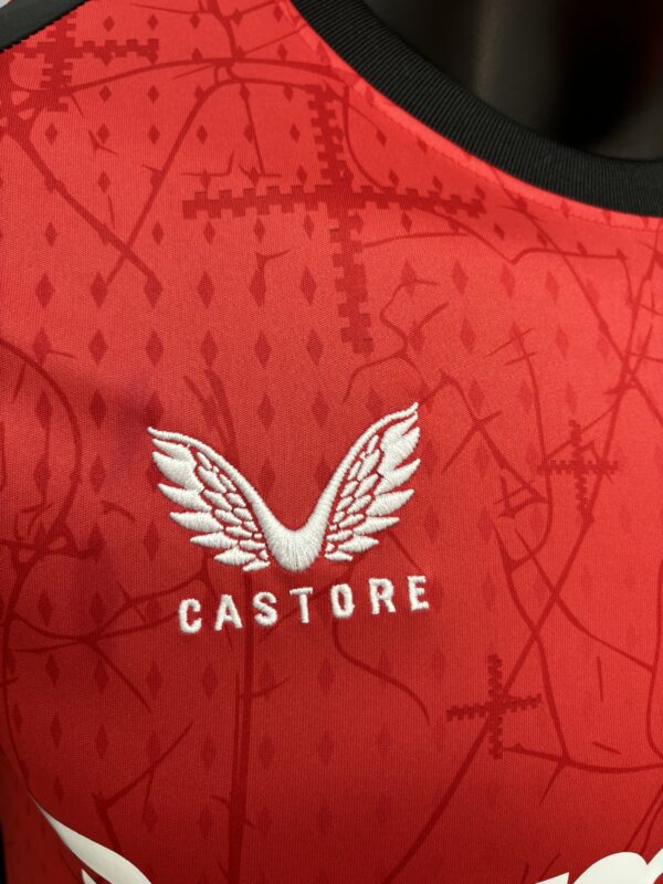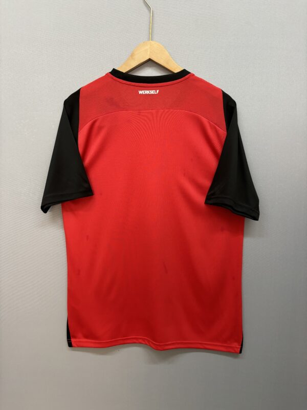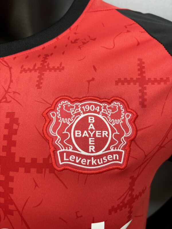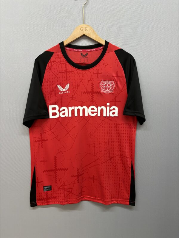 The Bayer Leverkusen home jersey stands out with its bold red design and sleek black accents. Perfect for fans who proudly support Die Werkself.