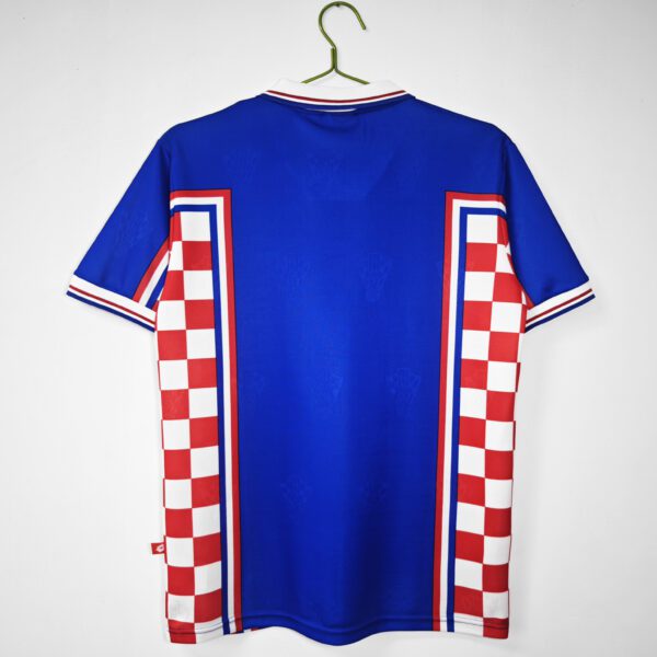 Croatia 1998/99 Retro Away Jersey features a bold white design with red and blue accents, worn during a time when the team built on their strong performance at the 1998 FIFA World Cup. Retro Jersey 1998/99.
