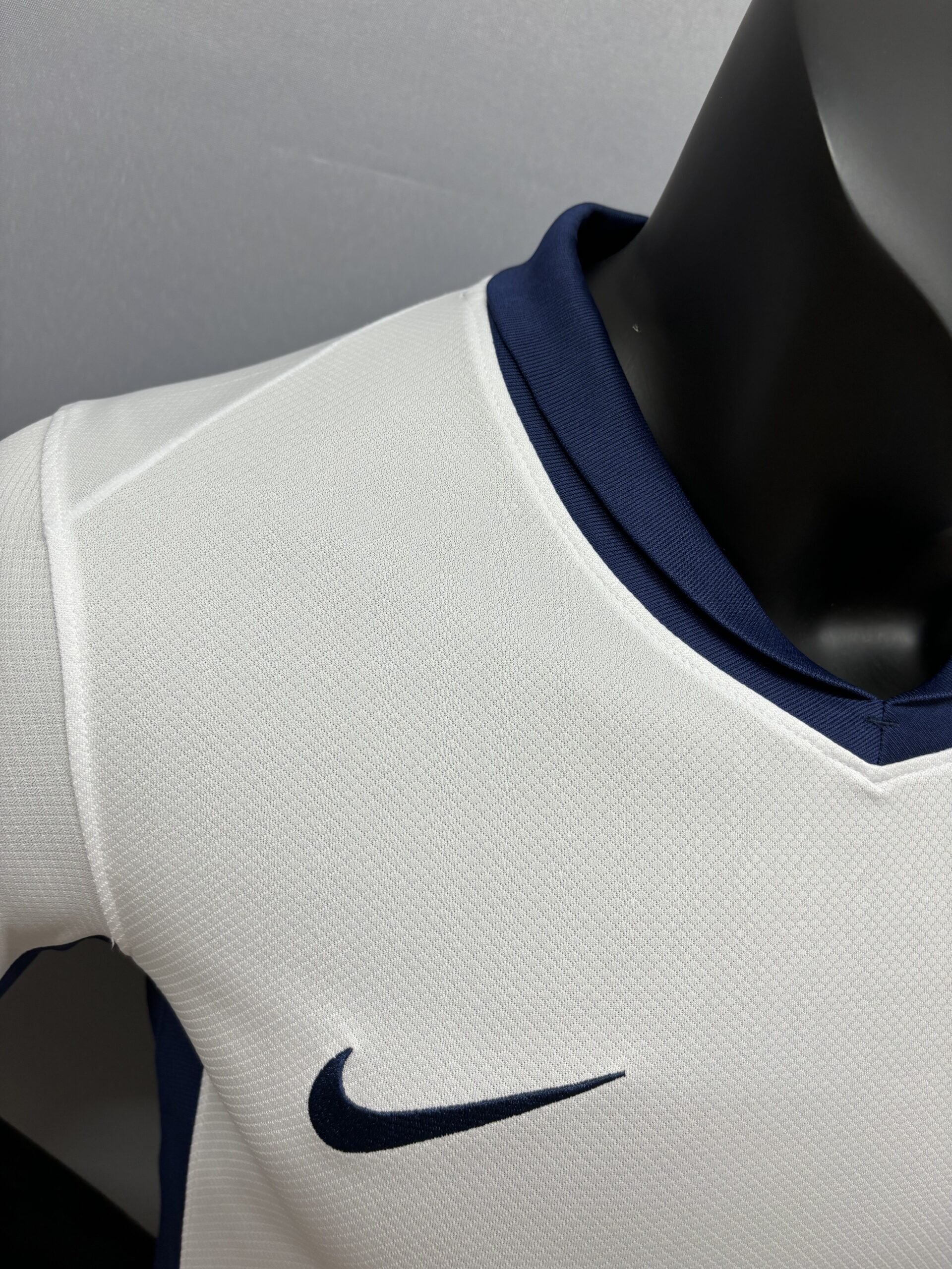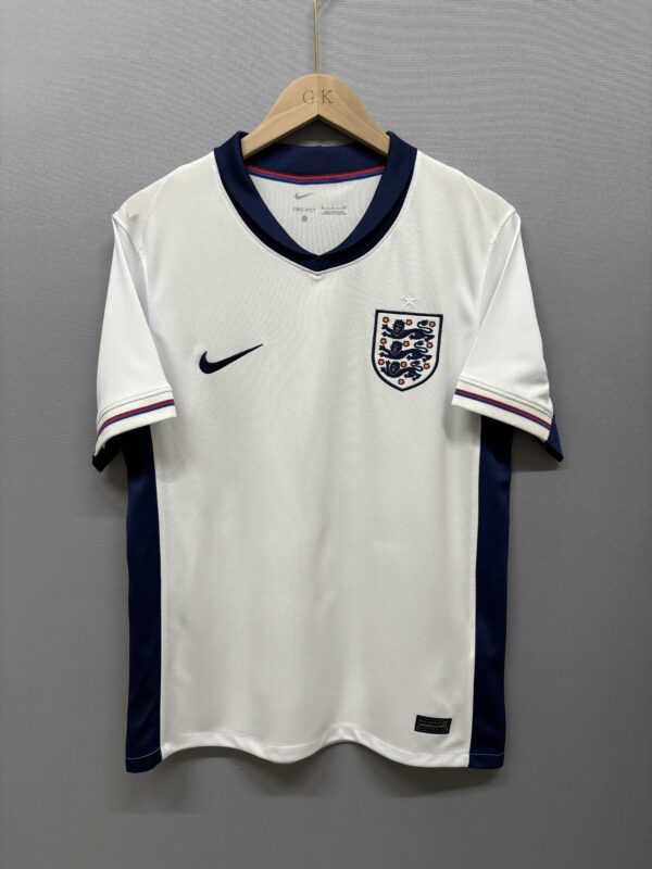 The England Euro 2024 home jersey is expected to feature a clean, modern design with the traditional white base color, paired with blue and red accents, reflecting the country’s flag.