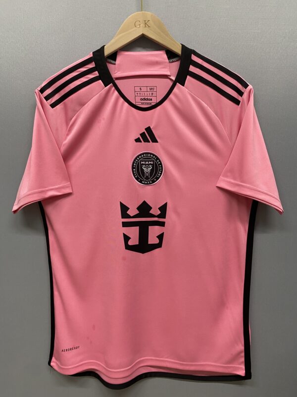 The Inter Miami 2024 jersey features a bold pink and black design, reflecting the club’s identity. It includes the iconic Inter Miami crest, with clean lines and modern touches. Produced by Adidas, it combines style and performance with advanced materials.