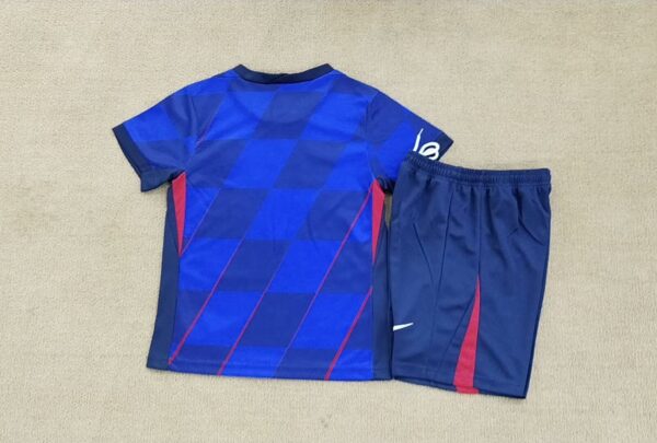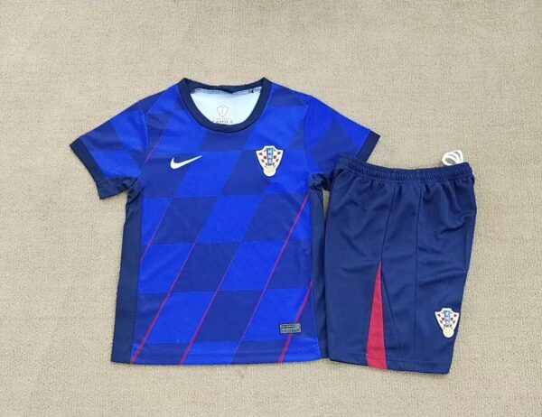 Croatia 24/25 Away short with Jersey for Kids have a sleek and modern design that reimagines the classic national style. This set is perfect for young fans ready to support Croatia this season 24/25.