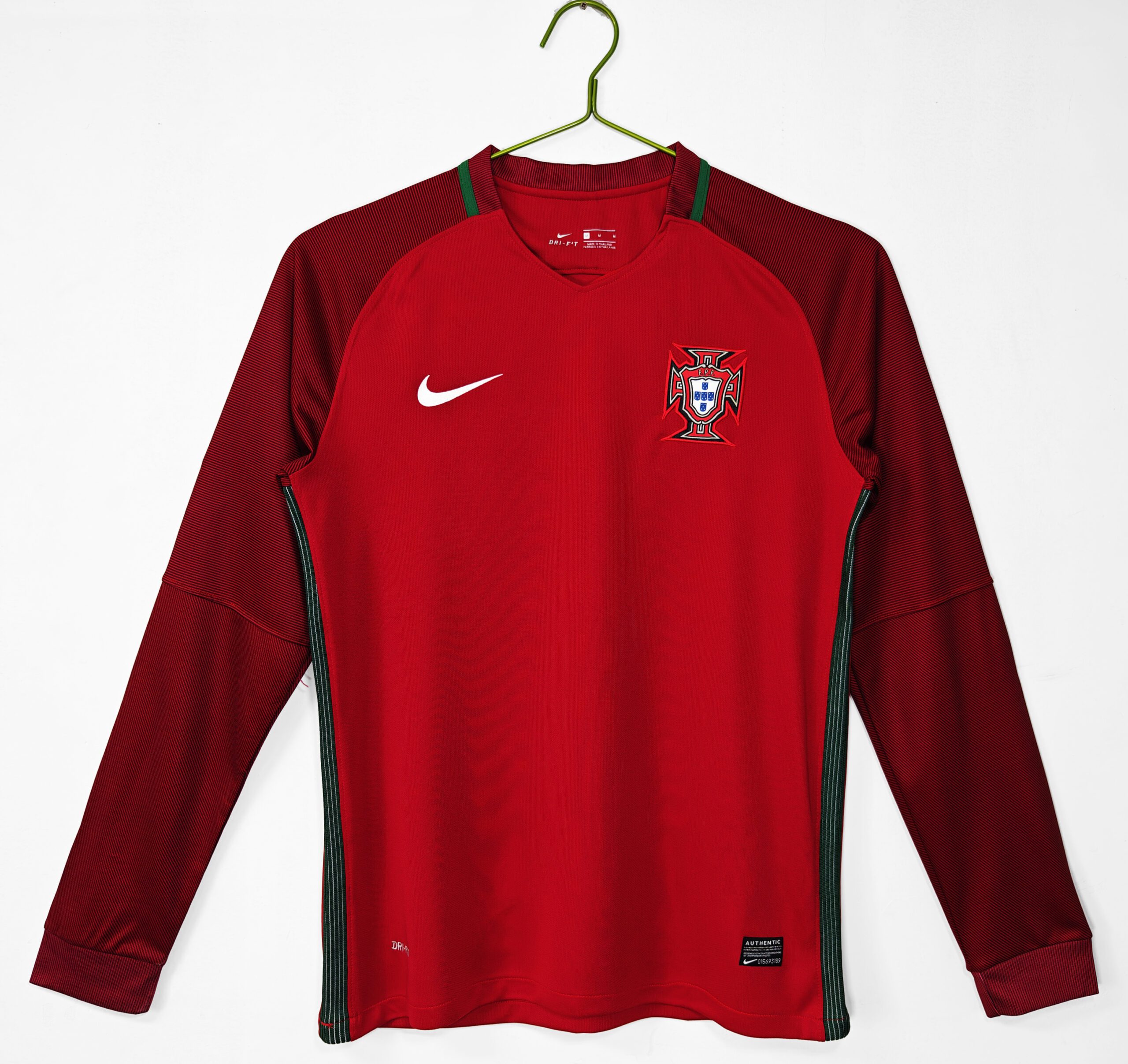 Portugal 2016 Home Long Sleeve Jersey for Kids A historic design honoring Portugal’s unforgettable Euro 2016 triumph, perfect for young fans proud to wear the colors of the champions.