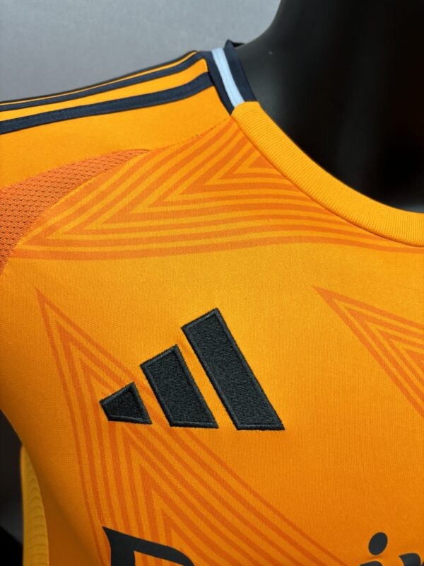 Look and feel like the real deal when you add this 2024/25 Jersey to your Real Madrid collection. This adidas gear features AEROREADY technology as well as ventilated, mesh panels that work together to keep you dry and comfortable all game long. Its exciting Real Madrid graphics will get you pumped to cheer on your favorite team as they take the pitch.